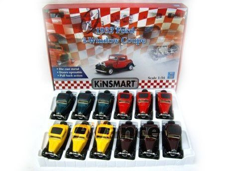 Referencia: KT5332 - Modelo: Ford Coupe 1932 - 4 cores:verde, vermelho, amarelo, bordo , 3 pça de cada, total de 12 carrinhos por caixinha - Escala 1:32